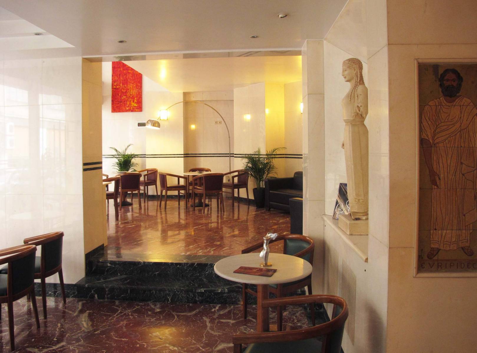 La sala de desayunos se encuentra en la 7ª planta y el desayuno se sirve diariamente de 07:00 a 10:15. Nuestro desayuno incluye café, zumos, leche, pan, mantequilla, miel, mermelada, cereales, queso, jamón, salami, huevos, cruasanes, frutos secos y también varios productos típicos griegos (participamos en la iniciativa "Desayuno Griego") como yogur, aceitunas, tomates, queso feta y frutas frescas de temporada que recibimos cada día del mercado central de Atenas, a solo unas pocas manzanas de distancia. ¡Comience su día con un desayuno nutritivo mientras disfruta de los primeros rayos de sol sobre la Acrópolis!